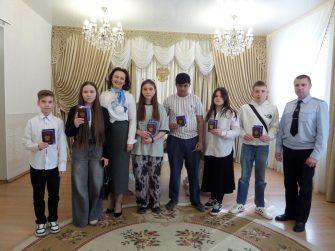 В уютном зале отдела ЗАГСа собрались ребята и их родители.