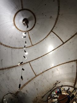 Но сегодня этот символ демонстрирует другую, уродливую сторону жизни. Вандалы проделали в нём дыры, и теперь внутреннее пространство шара, задуманное как цельное, набивается мусором, ветками и даже деньгами (видимо теми, которые заботливые родители дают своим деткам на карманные расходы).