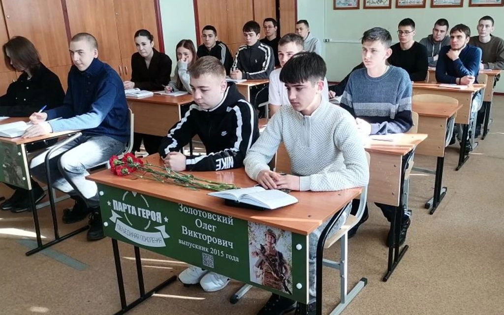 Одна парта посвящена нашему земляку Олегу Золотовскому, который в 2015 году с отличием закончил это учебное заведение по специальности «Электромонтажник электрических сетей и электрооборудования».