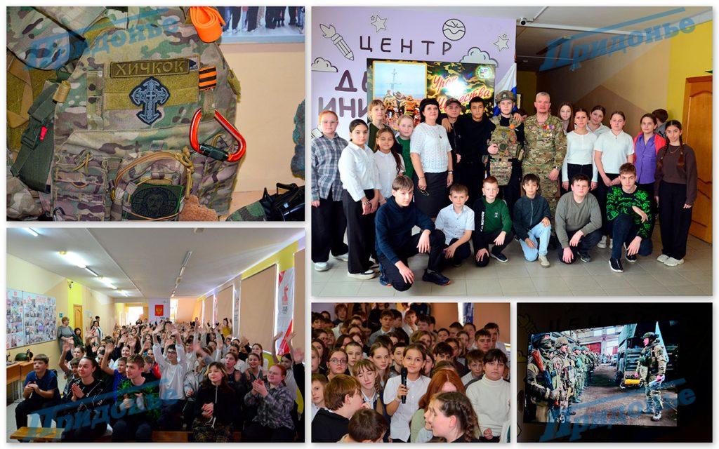 В прошлый четверг зал школы станицы Красноярской на два с половиной часа превратился в импровизированный кинозал и музей одновременно. Поводом для этого стала встреча учеников с военным документалистом Альфредом Анатольевичем Хлебиным — автором фотографии «Установка казаками поклонного креста под Работино Запорожской области», облетевшей все мировые информационные ленты. Человек-легенда с позывным Хичкок приехал в Цимлянский район не с официальным докладом, а с вещами, которые редко показывают на телевидении.