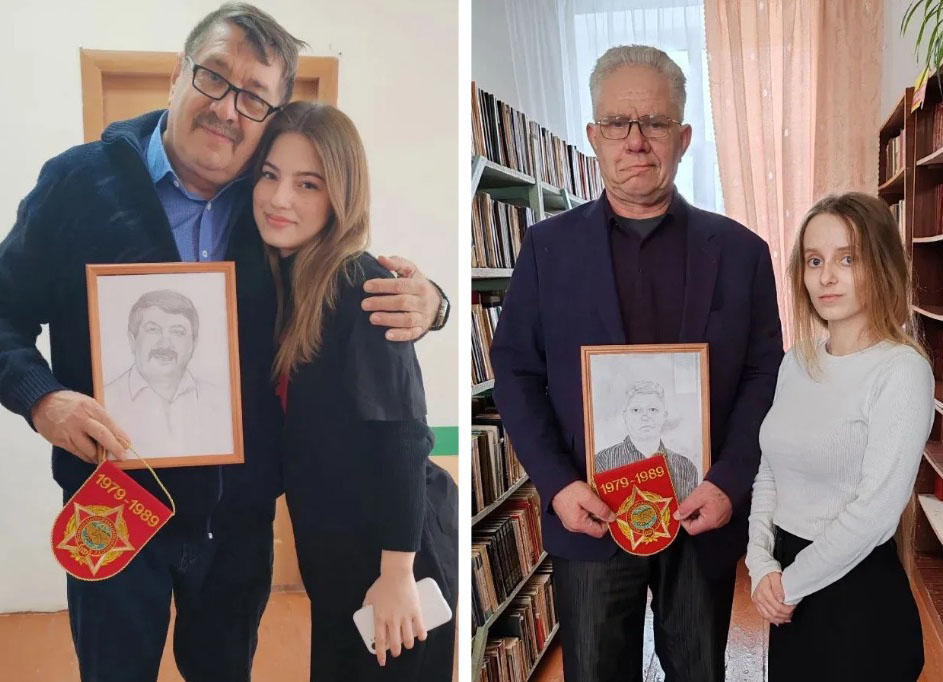 Мария Чурилова и Полина Рожнова нарисовали портреты выпускников школы, ветеранов боевых действий войны в Афганистане — Николая Евгеньевича Маркина, Вячеслава Георгиевича Конюхова и Александра Александровича Скоробогатова. Для юных художниц это был не конкурс рисунков, а личная возможность выразить благодарность тем, кто защищал интересы нашей страны в далёкой загадочной стране Афганистан.