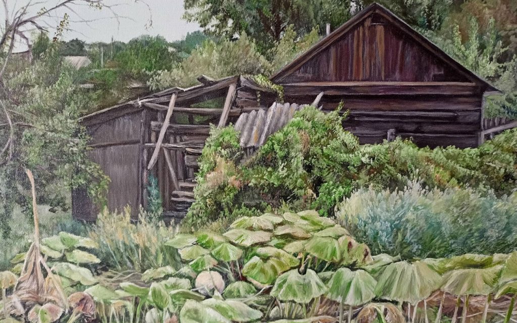 — Вот и решила отправить именно эту работу. Картина не просто пейзаж, а двор моей бабушки с поспевающей тыквой и сарайчиком, в котором жили козы, — рассказывает художница.