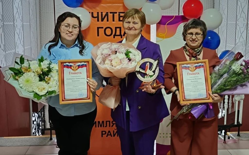 По итогам конкурса победителем стала Татьяна Петровна Сазонова (на снимке в центре), а её соперницы получили почётное звание Лауреатов конкурса «Учитель года-2026».