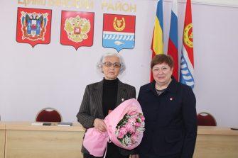 Елена Николаевна Ночевкина поблагодарила Раису Анатольевну за работу, вручила ей Приветственный адрес и букет цветов.